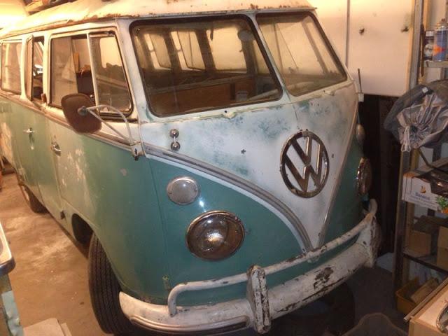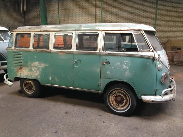 VW T1 Split Bus 15-Window 1962, real German NO BRASIL Turkisch green, NON Walkthrough USA-import.Complete bus with work at front floor, brakes.