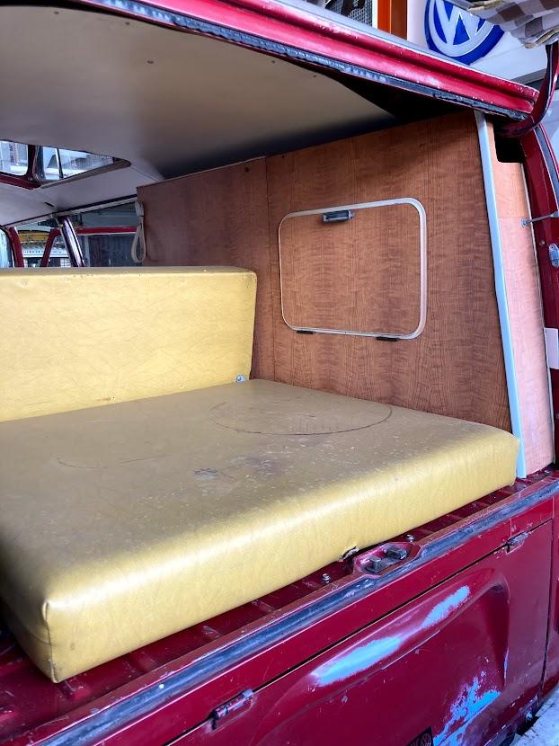 This Bus has left the factory as a Westfalia Campervan but somewhere they take of the fiberglass westfalia roof top and put this amazing Beetle on top.