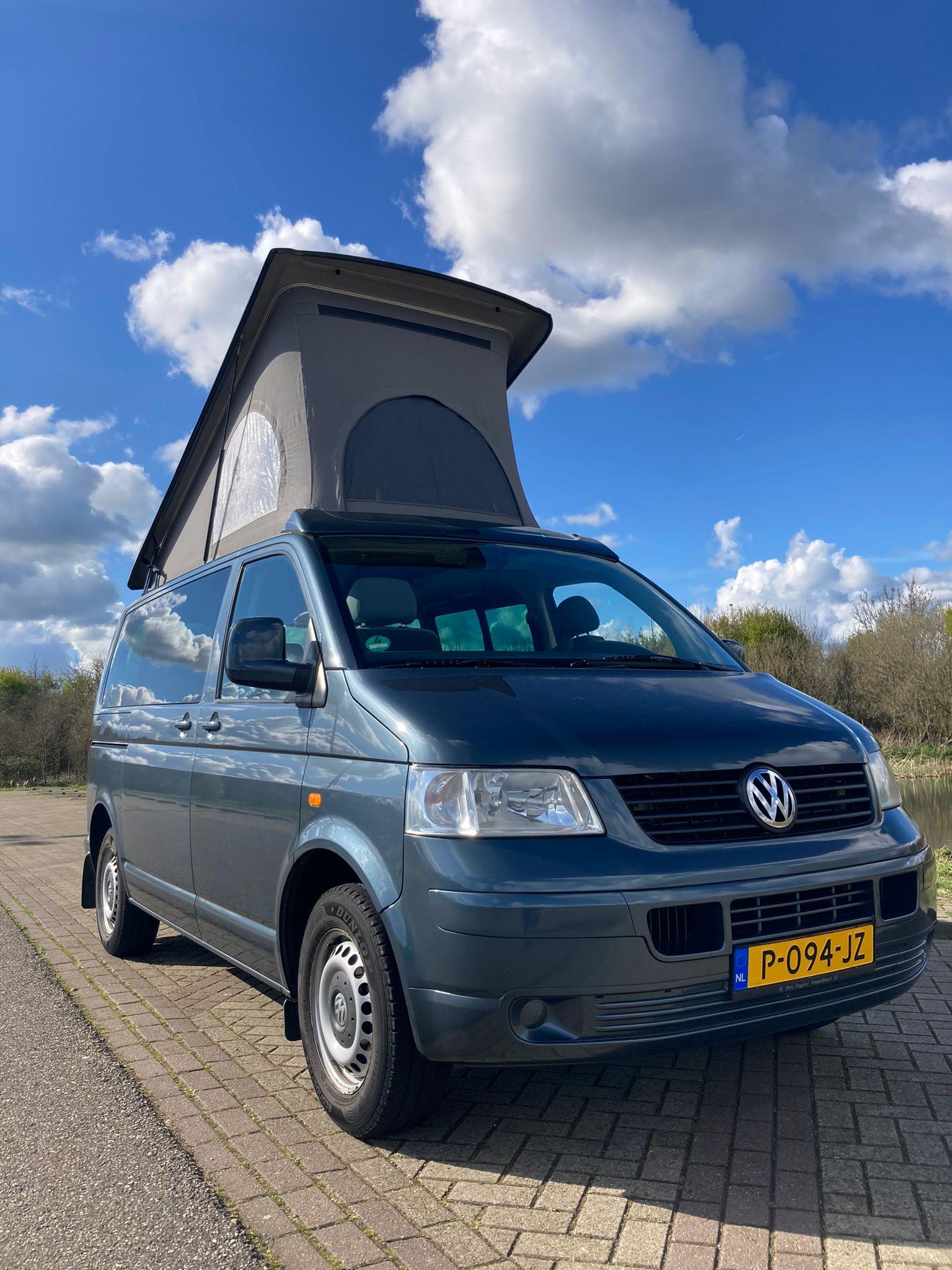 Originele fabriekscamper met groot hefdak, 4-volwaardige zitplaatsen en tevens 4 slaapplaatsen.